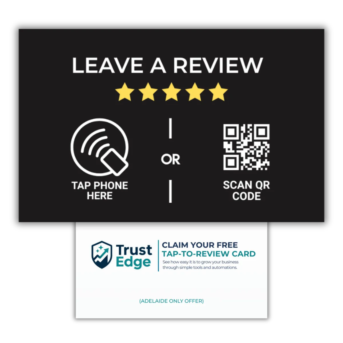 Turn happy customers into 5-star reviews with a simple tap. Hand the card to a customer, they tap with their phone, leave a review, and boost your reputation — it’s that easy.